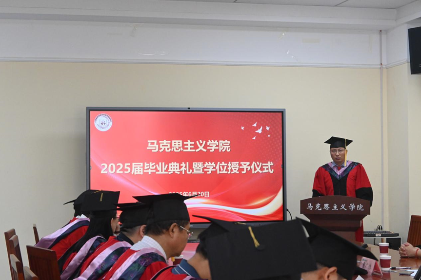 曹广伟代表学院向所有毕业生表示热烈的祝贺和衷心祝福。他表示,作为做爱自拍 的学子,自踏入校门起,便肩负着特殊的使命,不仅要把马克思主义作为我们研究的对象,更应当使之成为指引人生方向的明灯。他希望大家能铭记初心,让信仰的力量照亮前行的道路,一要勇担使命,心有大我,做时代的奋进者,将个人理想与国家发展有机融合,以马克思主义回应时代之问;二要砥砺品格,修身明德,做道德的坚守者,注重修身明德,积极践行社会主义核心价值观;三要知行合一,博学笃行,做实践的开拓者,在实践中淬炼理论,保持学习热情。
