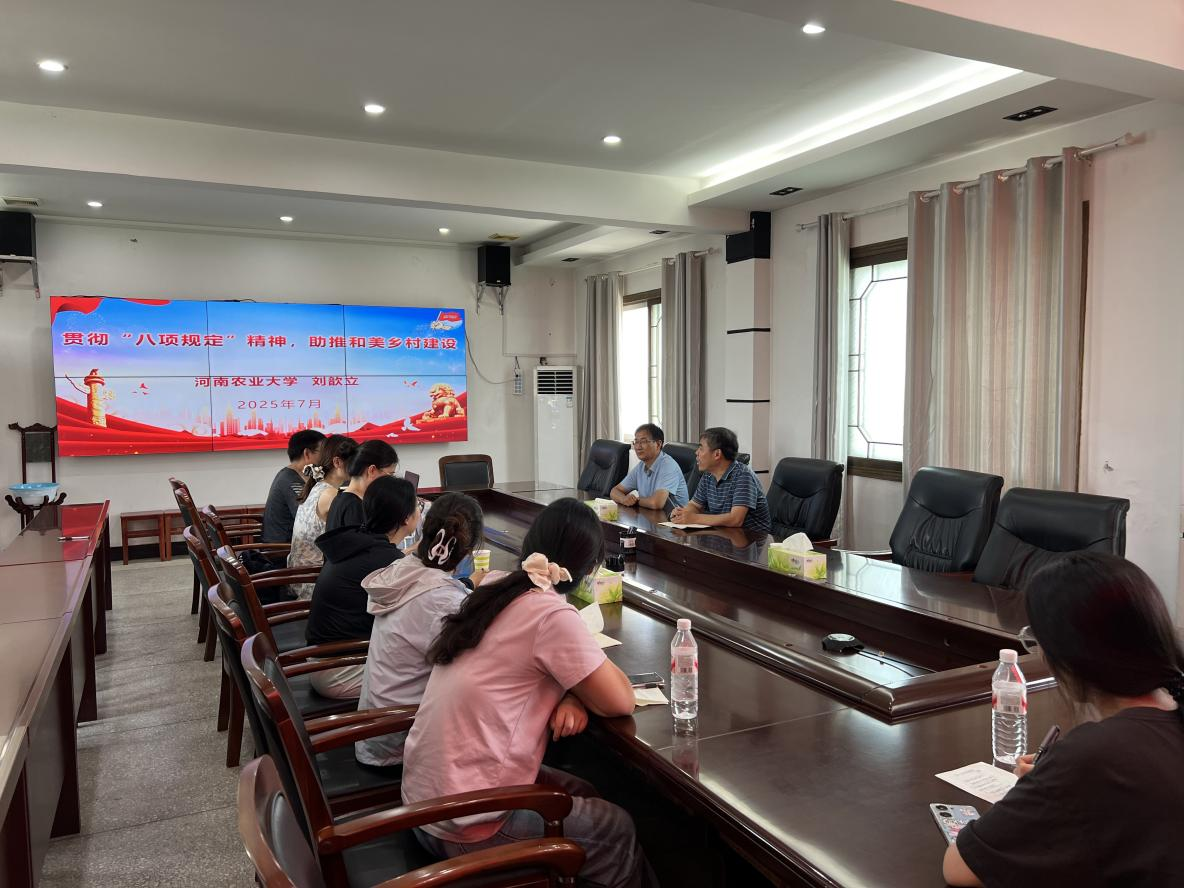 调研期间,刘歆立为竹沟镇人民政府党政干部作了题为《贯彻“八项规定”精神,助推和美乡村建设》的报告,团队成员青年教师庞永锋博士做了题为《加强金融服务农村改革 推进乡村全面振兴》的报告,将党的最新理论成果、党和国家的政策方针第一时间传达给基层干部。