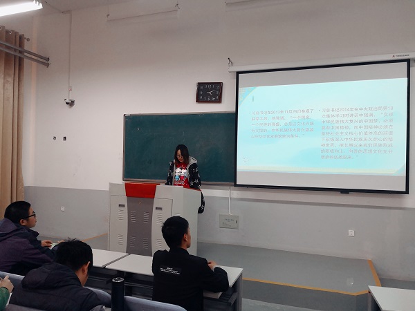 15级研究生宋佳琪以“弘扬传统文化,实现中国梦”为主题进行了演讲,青年马克思主义研究会全体成员参加了此次活动。