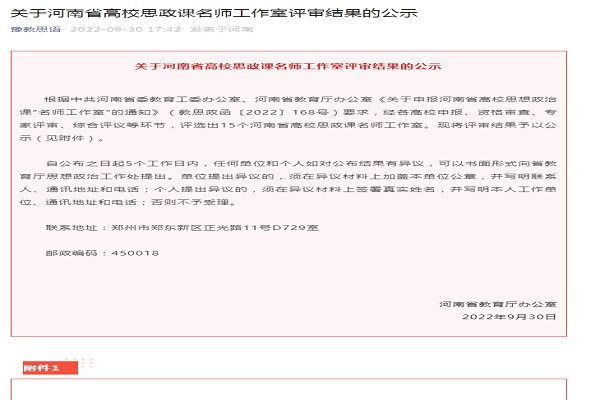根据中共河南省委教育工委办公室、河南省教育厅办公室《关于申报河南省高校思想政治课“名师工作室”的通知》(教思政函〔2022〕168号)要求,经各高校申报、资格审查、专家评审、综合评议等环节,评选出15个河南省高校思政课名师工作室,我中心王晨副教授申报的思想政治课“名师工作室”名列其中。