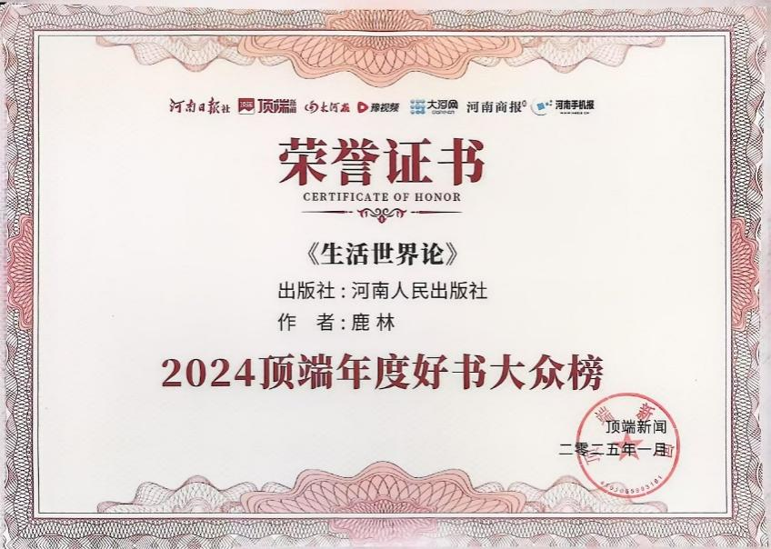 喜讯:鹿林教授著作《生活世界论》荣获“2024顶端年度好书”
